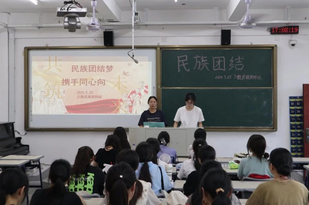 我院来自广西壮族自治区与贵州省的2024级少数民族预科班40位同学出自苗族、壮族、布依族等十一个少数民族。为了弘扬民族团结进步的精神,凝聚全民族的力量,加强民族团结教育,促进各民族繁荣发展和社会进步,进一步铸牢中华民族共同体意识,9月19日下午,太阳集团城娱872224级少数民族预科班在辅导员孙桥老师的主持之下,在逸夫楼402开展以民族团结为题的专题班会。