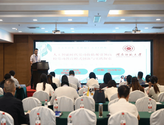 此次会议主要围绕新时代劳动教育与思政教育的耦合互动、人工智能赋能劳动教育的机遇与挑战、人工智能语境下的劳动教育体系建设前沿探索和数智化劳动教育课程设计与实践创新等议题展开。我校刘磊副教授在第一分论坛作了题为“人工智能时代劳动价值观引领高校劳动教育模式创新与实践探索”报告。他分析了新形势下劳动教育加强人工智能技术赋能和劳动价值观引领的重要性,分享了我校劳动教育适应新形势需要进行的实践探索和取得的主要成果,提出了人工智能时代劳动价值观引领劳动的基本模式和推进路径。他的报告内容丰富、观点新颖,引发了与会代表的广泛关注和热烈讨论。会议期间,我校团队还积极参与了各项交流活动,与来自全国各地的劳动教育领导、专家学者及一线教师进行了深入交流,共同探讨劳动教育的新理念、新方法。