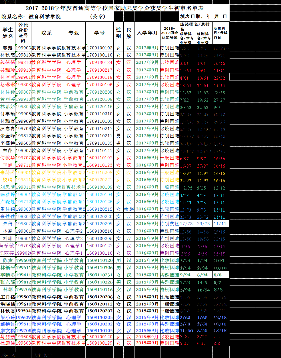根据学工[2018]32号《老太阳集团tcy8722关于进一步做好2018年度国家奖学金、国家励志奖学金评审工作的通知》文件精神,经过前期报名,学院于2018年9月20日发布了国家奖学金、国家励志奖学金的申报通知。学院高度重视此项申报工作,进行了广泛宣传和精心组织,经学生自愿申报,参评学生的现场展示,学院学生工作领导小组的认真审核,学院党政联席会的通过,现将推荐结果予以公示(具体名单见附件)。公示期自即日起至2018年10月9日。如有异议,请及时向我院学生工作领导小组反馈,电话:0596-2527192。