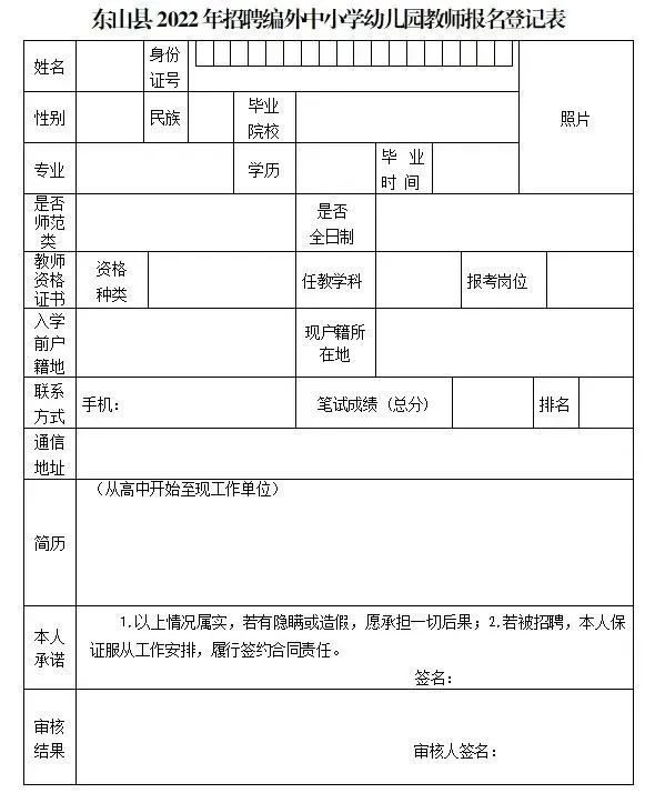 附件:《东山县2022年招聘编外中小学幼儿园教师报名登记表》