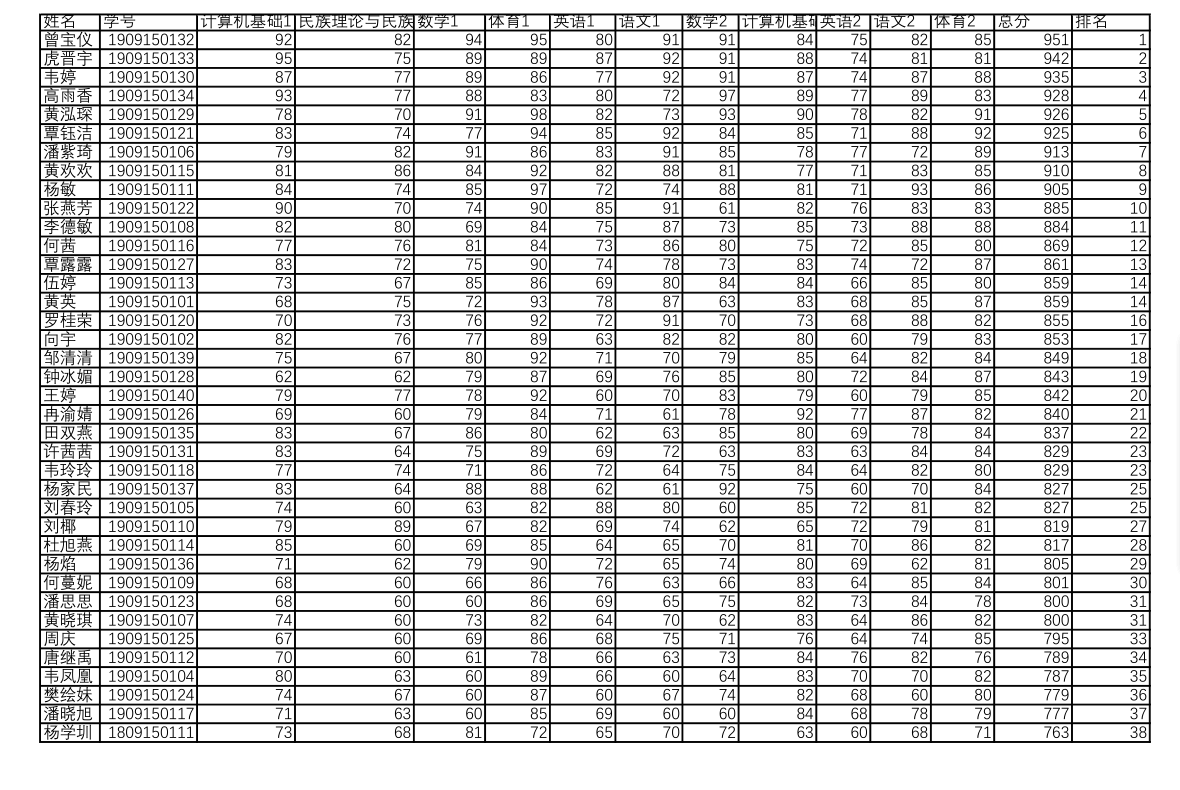 现将2019级少数民族预科生2019——2020学年学习成绩总分排名情况进行公示,公示时间为2020年9月30日——10月6日,公示期间如有异议,请联系:夏丽君老师,联系电话:13779905774。