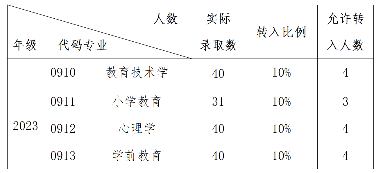 二、各专业允许转入的学生人数