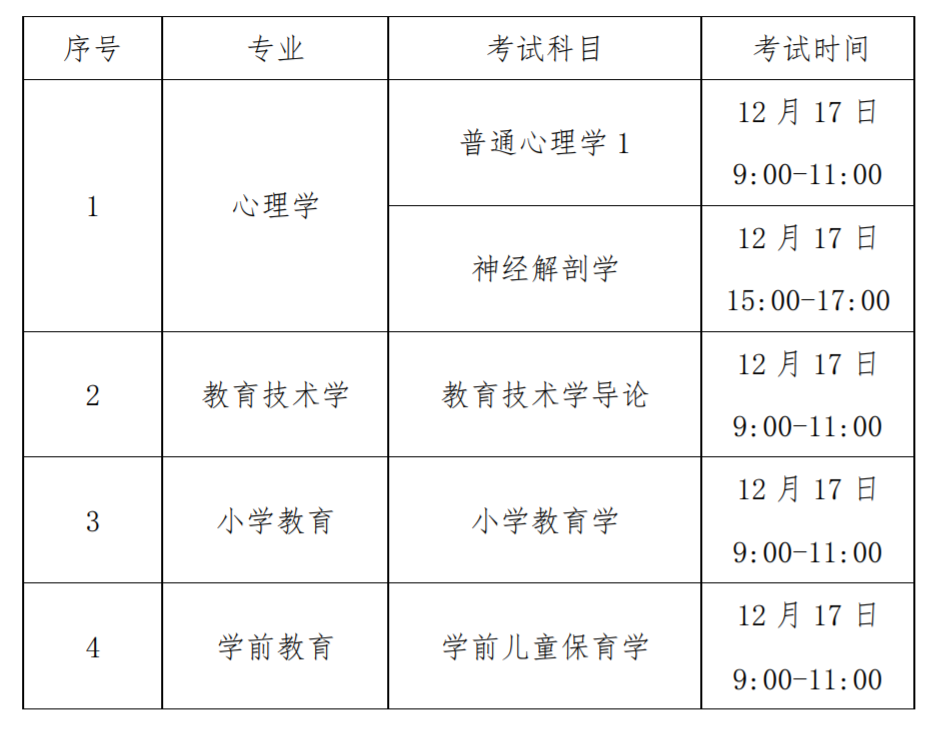 心理学专业:1.《神经解剖学》,主要考核人体神经系统的解剖结构和主要功能。2.《普通心理学1》,掌握心理学的基本知识、基础理论和基本方法的有关内容,运用理论和方法分析、解决教育实践活动中的心理现象与实际问题。