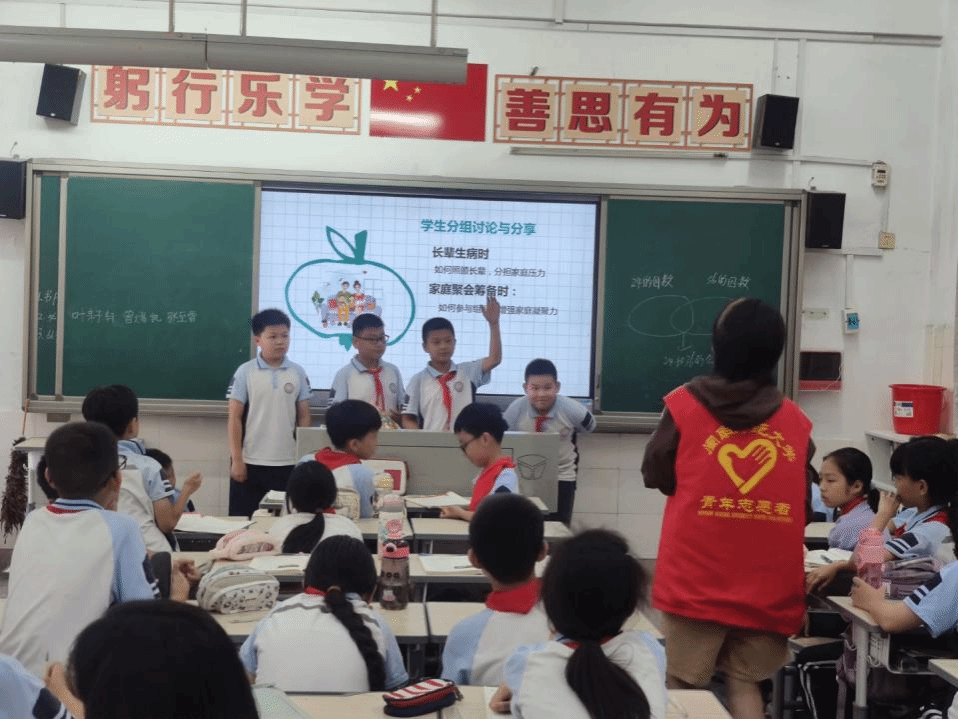 在“家的温暖”主题活动中,低年段学生用童言童语分享欢乐,从中感知父母之爱;中年段学生通过情景演绎,实践感恩爱的行动,学会向家人合理表达自身情绪;高年段学生思考亲子关系与成长意义,学会与家人协商解决矛盾。