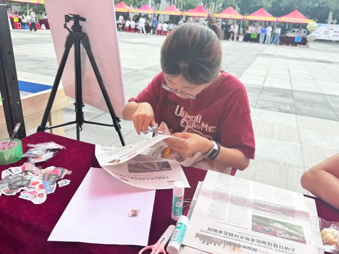 活动现场还设有拍照打卡区,参与者可手持作品与创意背景板合影留念,并通过完成活动任务兑换刮刮乐、定制手链、减压捏捏乐等特色奖励,气氛热烈,欢声不断。