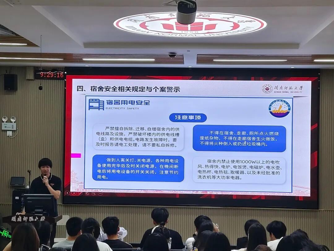 9月14日上午,研究生辅导员王文伟于东门梯教一开展2025级研究生班会。他首先对同学们的到来表示热烈的欢迎,并从爱国主义、安全防范、文明养成、学涯规划、规章制度、心理健康等多个方面开展新生入学教育。他还以往届毕业生就业情况为例,分析了当前就业形势与学院学科实力,建议同学们早做准备、提升综合竞争力。